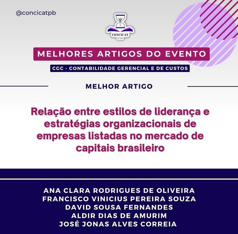 "Relação entre estilos de liderança e estratégias organizacionais de empresas listadas no mercado de capitais brasileiro";