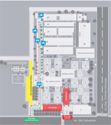 Orienta-se à comunidade acadêmica que utilize os espaços nos arredores da instituição para que possa estacionar os seus veículos com tranquilidade, a exemplo da lateral da universidade na Avenida Pinheiro Machado e os estacionamentos em frente ao portão de entrada principal. Para maior comodidade, o portão lateral que dá acesso à Av. Pinheiro Machado estará aberto para o trânsito de pedestres das 07h30 às 18h.