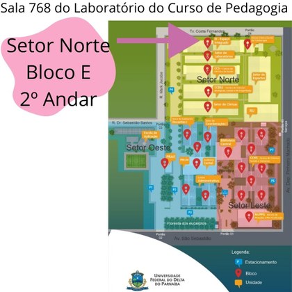 Esperamos vocês no dia 28 de novembro, terça-feira, às 15h, na Sala 768 do Laboratório do Curso de Pedagogia. Confira a localização da sala no mapa a seguir.