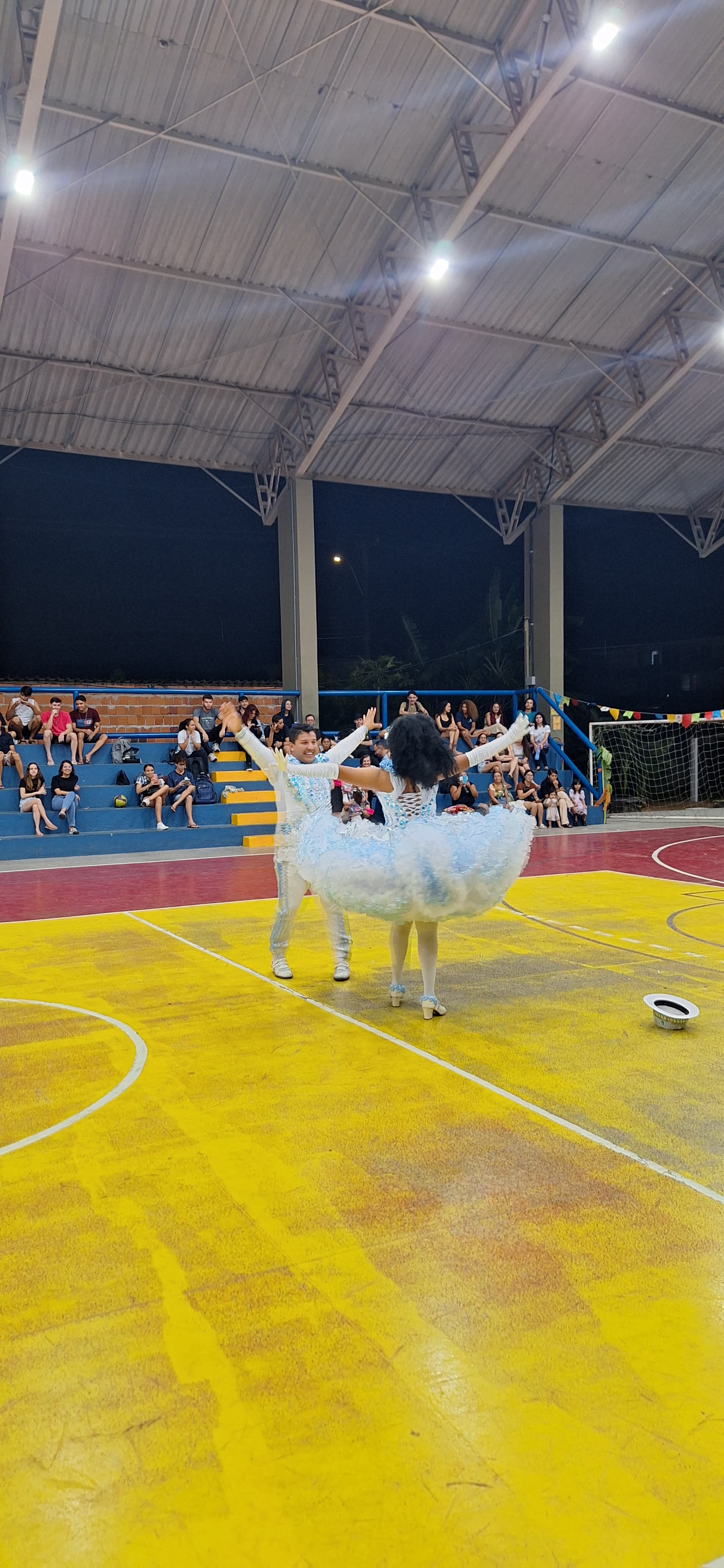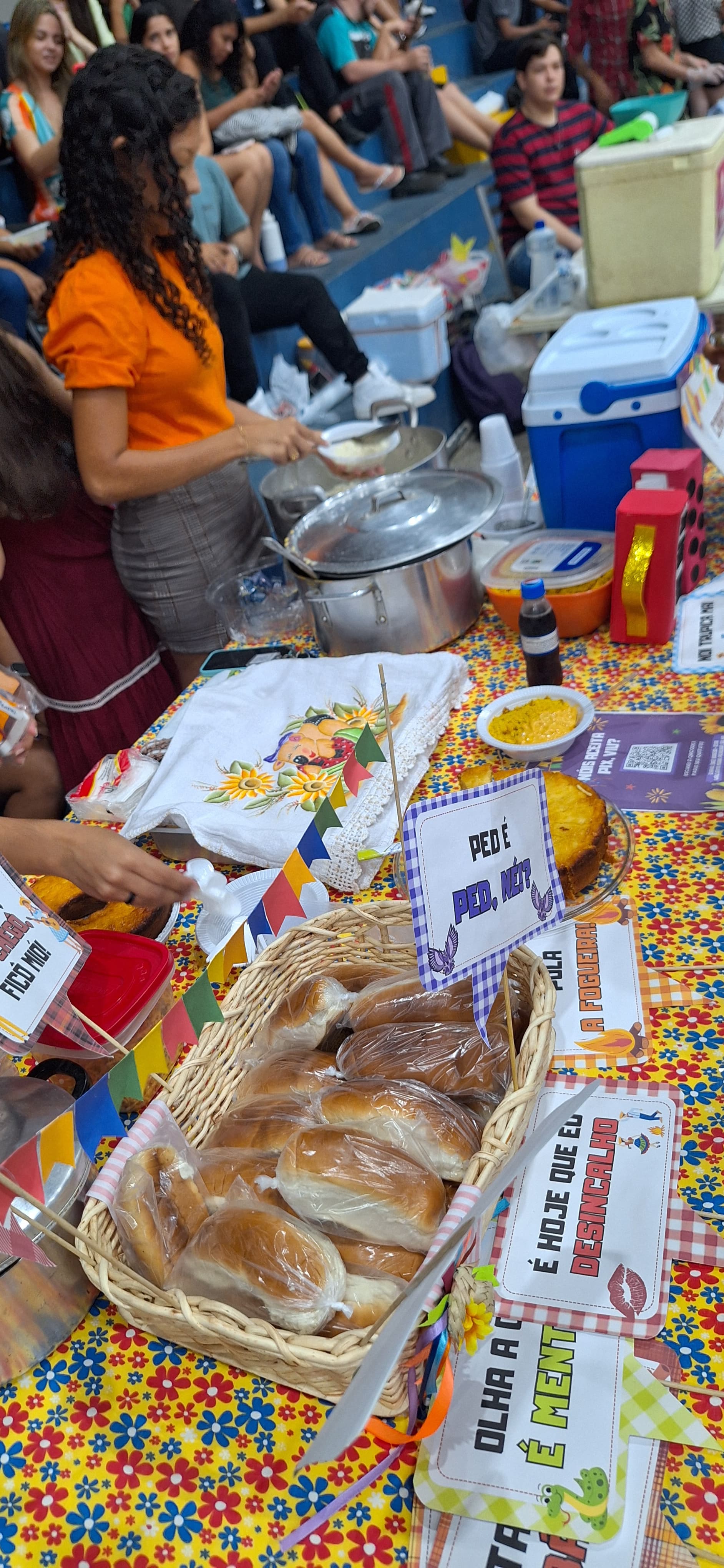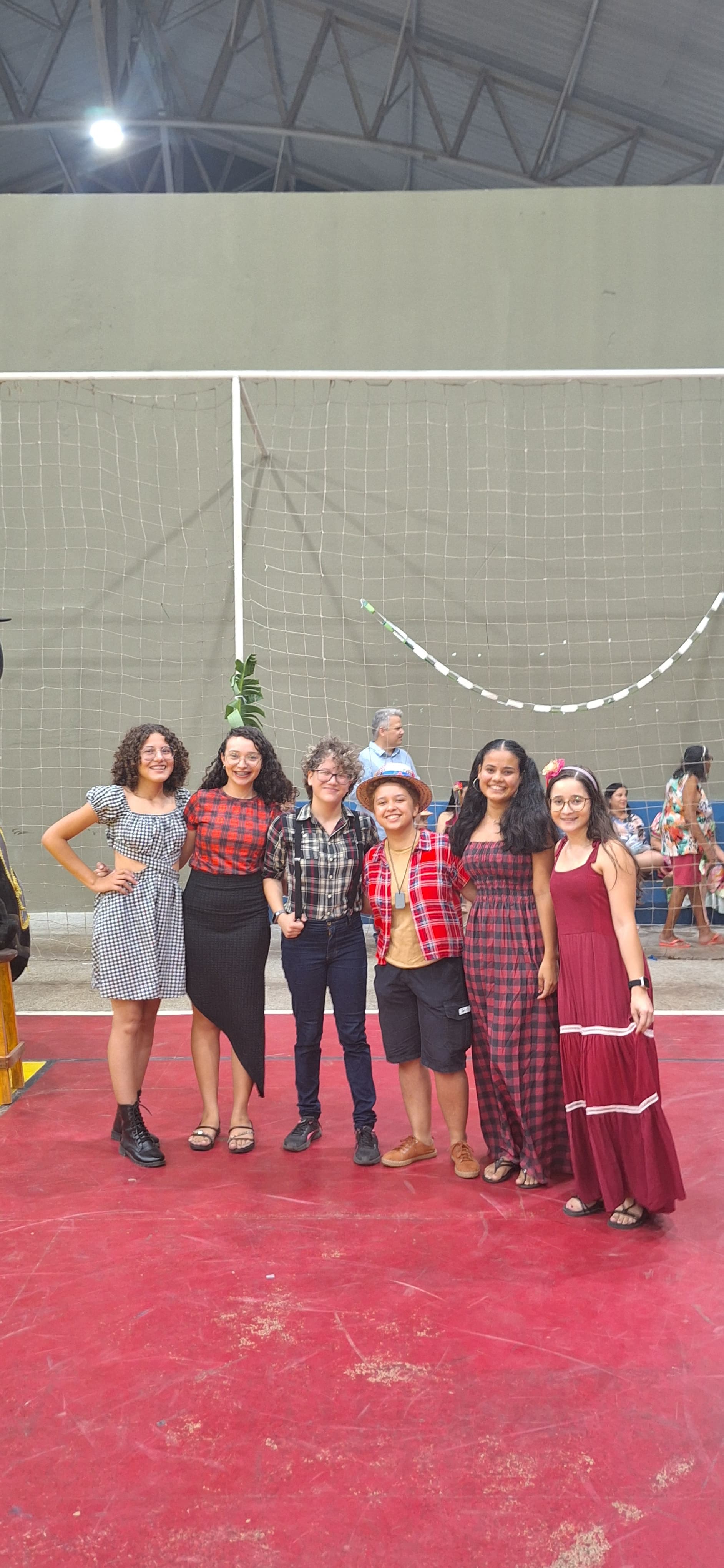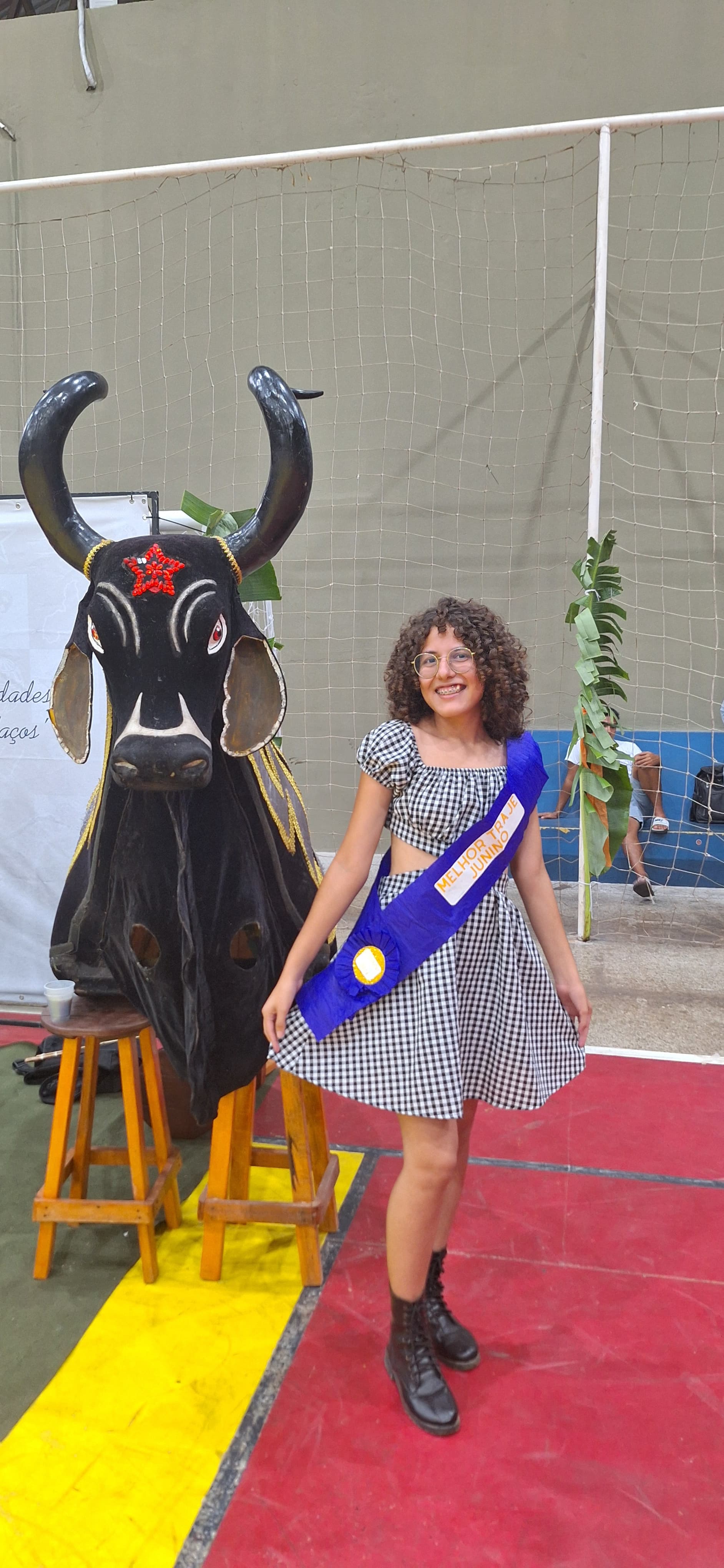 Uma quadrilha improvisada contou com a participação da comunidade acadêmica presente na quadra de esportes em um momento de muita descontração. A estudante do curso de Matématica Stefany Maria recebeu a faixa do concurso de melhor traje junino promovido durante o evento.