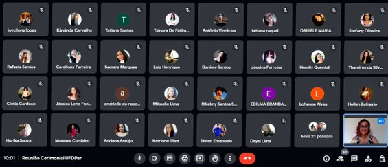 Ainda com relação a estas solenidades, no dia 19 de abril o Cerimonial realizou uma reunião virtual com as comissões de formatura e formandos do período 2022.2 para tratar dos assuntos pertinentes à organização das Colações de Grau. Foi proporcionado um momento para sanar as dúvidas e esclarecer sobre procedimentos, roteiros e demais tratativas, a fim de deixar formandos e formandas cientes dos protocolos e, acima de tudo, tranquilos e tranquilas diante de uma das cerimônias mais marcantes de suas trajetórias acadêmicas.