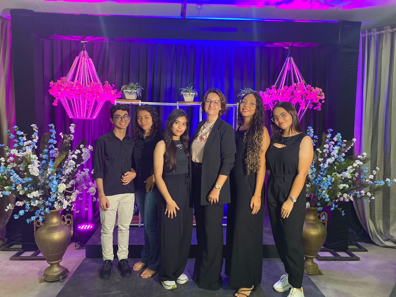 O Cerimonial chefiado pela Profa. Heidi Gracielle Kanitz contou com o auxílio de colaboradoras da instituição, além de uma parceria com o Curso de Eventos do CEEP, por meio da disciplina de Cerimonial e Protocolo, em que 15 estudantes revezaram-se ao longo das solenidades para atuarem como recepcionistas e como suporte ao Cerimonial, unindo a teoria à prática.