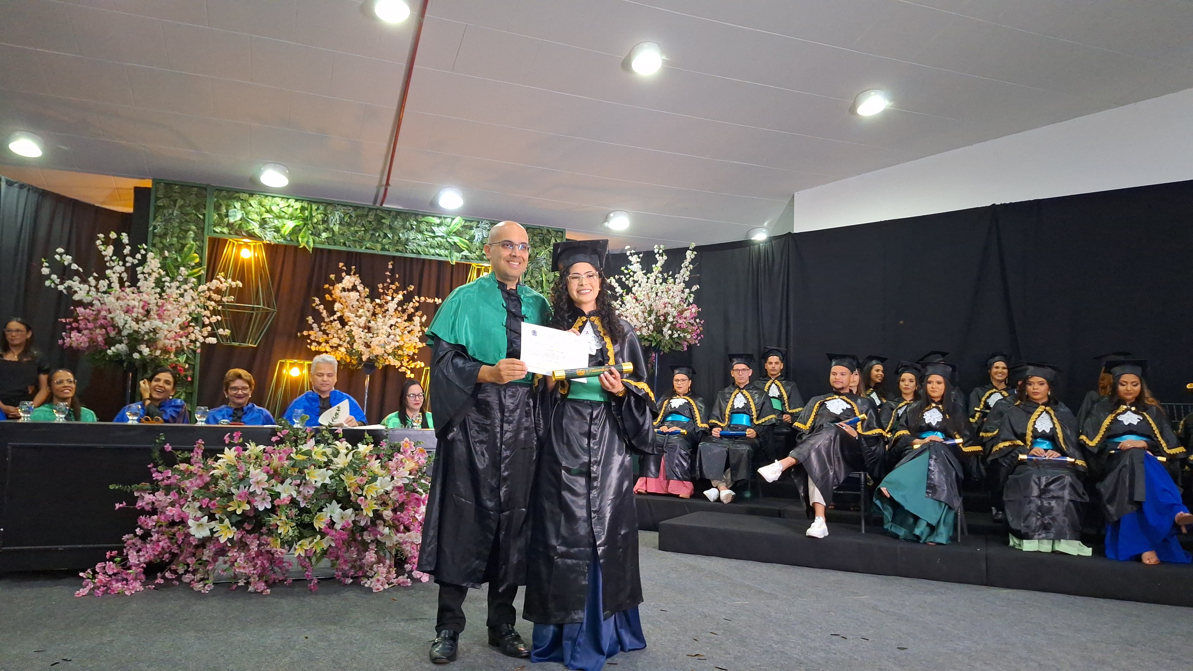 Os concludentes Rickelmy de Brito Pereira, do curso de Matemática, e Ana Joerica Lopes Vieira, do curso de Biomedicina, receberam Láureas Acadêmicas, que são concedidas a alunos da turma concluinte de cada curso de graduação em um determinado período letivo que apresentaram melhor desempenho nas atividades acadêmicas. Entre alguns requisitos para a concessão da Láurea Universitária estão: não ter incorrido em reprovação ao longo de todo o curso; ter se distinguido como aluno exemplar nas áreas de pesquisa e/ou extensão; ter um o Índice de rendimento acadêmico (IRA) igual ou superior a 8,5; e ter aprovação por média em todos os componentes curriculares.