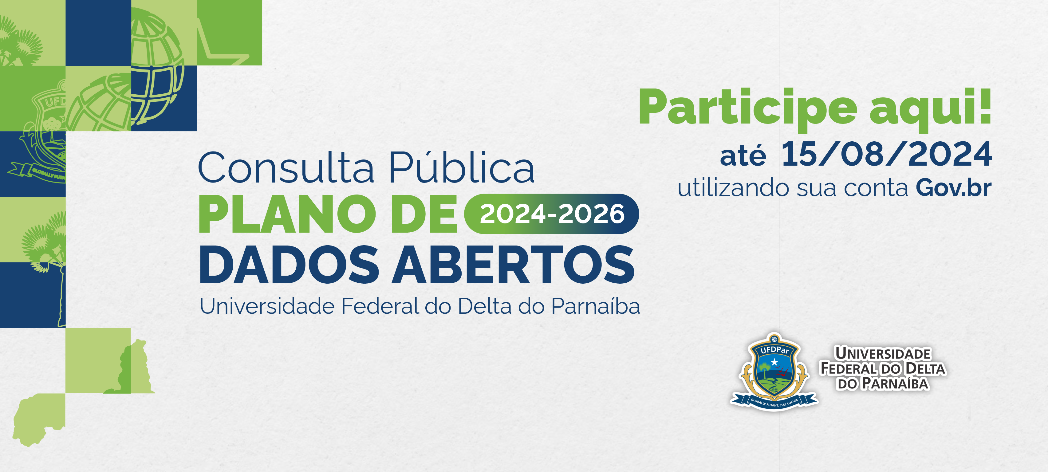 Encerra-se nesta quinta-feira (15/08) o prazo para a contribuição na consulta pública do primeiro Plano de Dados Abertos (PDA) 2024-2026 da Universidade Federal do Delta do Parnaíba (UFDPar), que está na fase de elaboração. O documento tem como objetivo priorizar a abertura das bases de dados mais relevantes para os cidadãos, produzidas ou acumuladas pela UFDPar. Para participar é preciso primeiro realizar o acesso no Gov.br no botão “Entrar “localizado na parte superior direita do site plataforma Participa + Brasil do governo Federal.