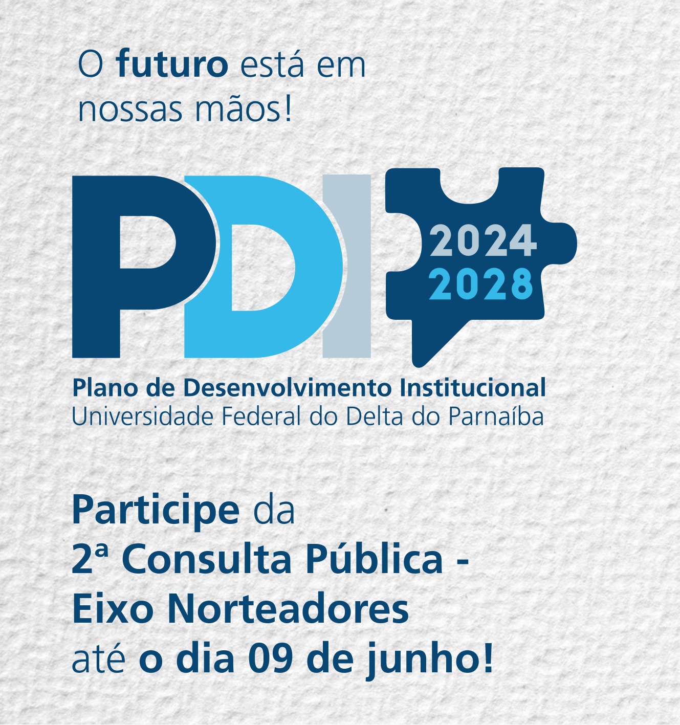 O PDI, plano de desenvolvimento institucional, é o principal documento que vai guiar o planejamento estratégico da UFDPar para os próximos cinco anos. A segunda Consulta Pública estará aberta hoje, 26 de maio de 2023, até o dia 9 de junho de 2023, onde será possível contribuir para a Construção dos Eixos Norteadores. Participe acessando a página do PDI no portal da UFDPar.