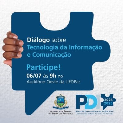 A Comissão Setorial de Tecnologia da Informação e Comunicação da UFDPar convida a comunidade acadêmica e a comunidade externa para o “Diálogo sobre Tecnologia da Informação e Comunicação” no dia 06 de julho de 2023, às 9h, no Auditório Oeste do Campus.