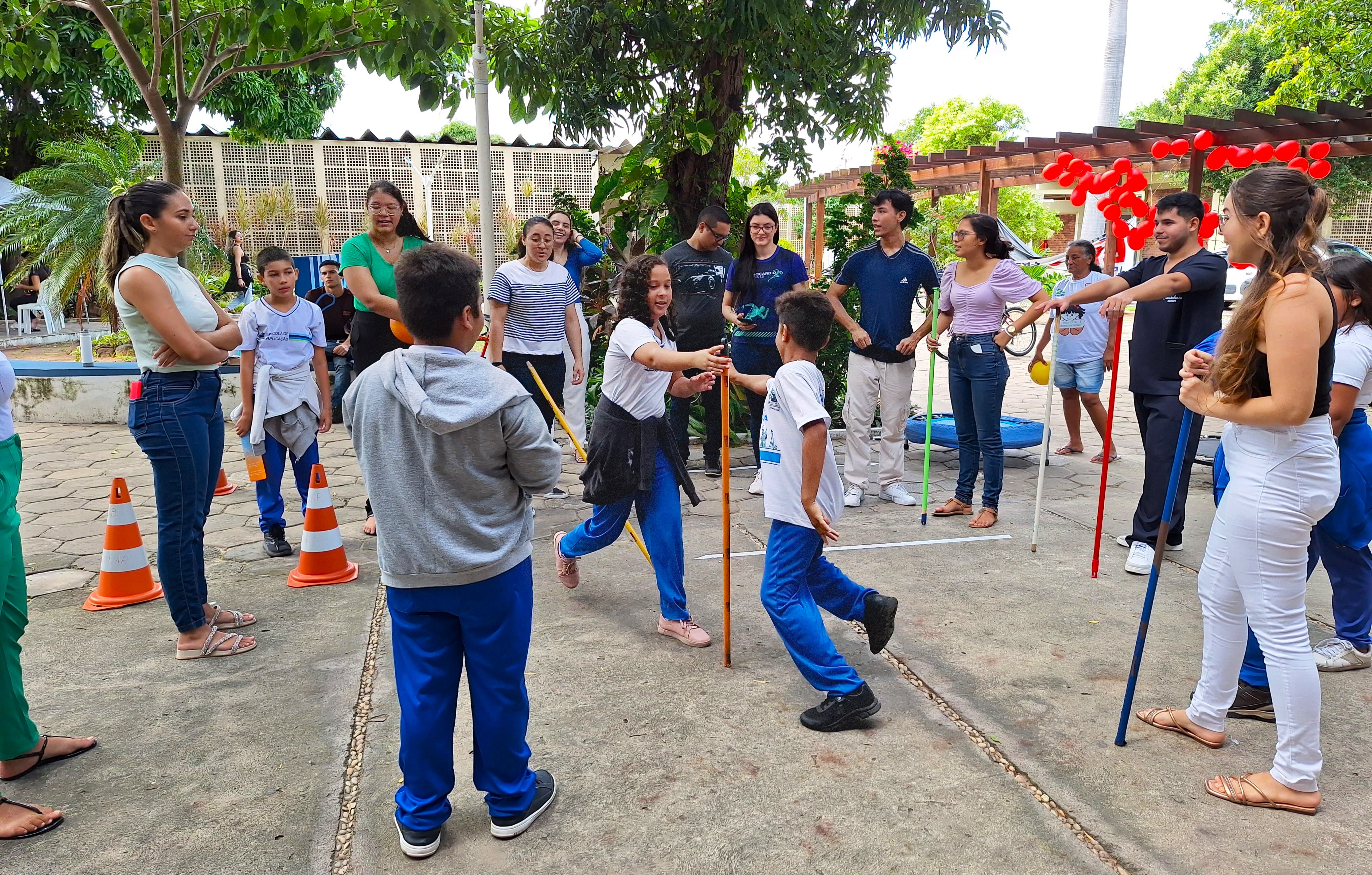 Foto: Alunos participam de atividades físicas e brincadeiras lúdicas.