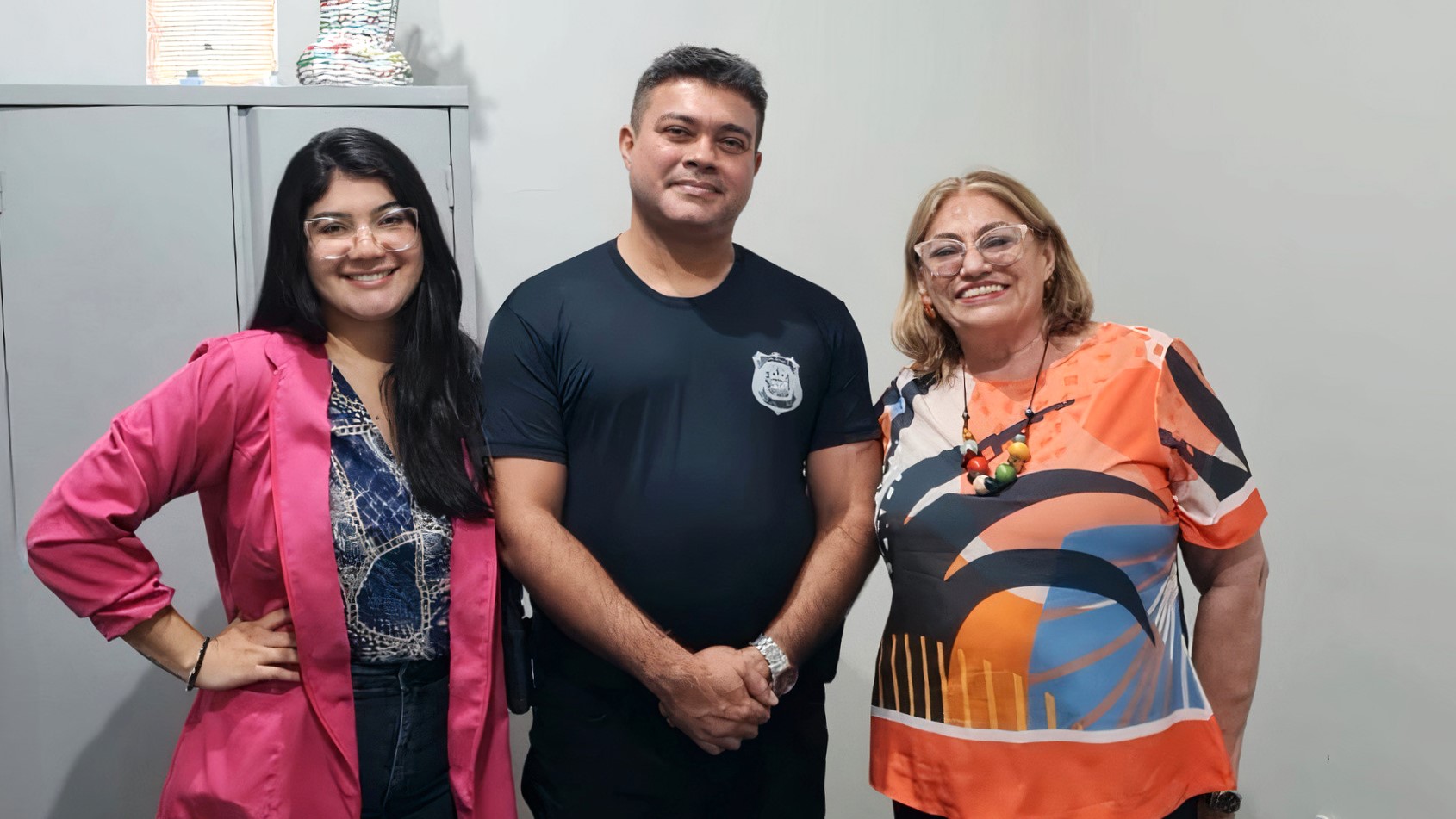 Foto: Professora Cloris Violeta acompanhada do Diretor da Penitenciária Mista de Parnaíba, Fernando Caldas, e da Assistente Social Maria.