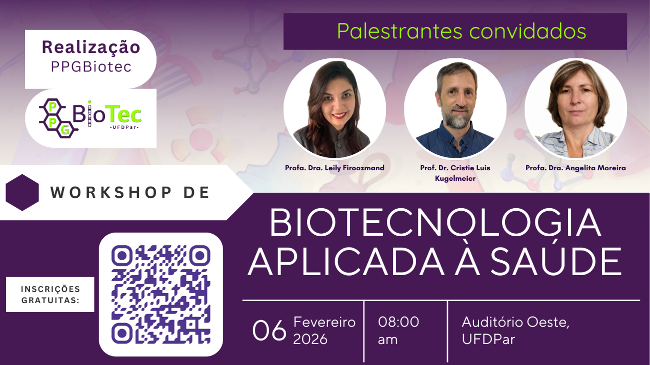 O evento tem como objetivo fortalecer o diálogo científico e a integração entre discentes, egressos, pós-doutorandos, docentes e pesquisadores, promovendo discussões sobre avanços, aplicações e inovação na interface entre a biotecnologia e a saúde. O workshop contará com a participação de pesquisadores convidados com atuação destacada em diferentes áreas do conhecimento, uma ótima oportunidade de networking.