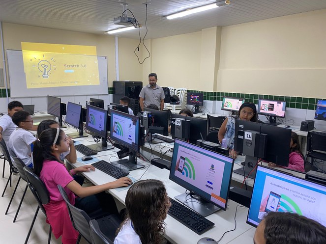 Hoje, a Universidade Federal do Delta do Parnaíba (UFDPar), em parceria com a Escola de Aplicação Ministro Reis Velloso (EAMRV), realizou a primeira aula do curso "Programação com Scratch 3.0 para Crianças". Essa iniciativa faz parte do Programa de Formação Tecnológica, desenvolvido pela Pró-Reitoria de Tecnologia da Informação e Comunicação (PROTIC) da UFDPar, com o objetivo de capacitar estudantes do 4º ano do Ensino Fundamental I, matriculados no turno da tarde.
