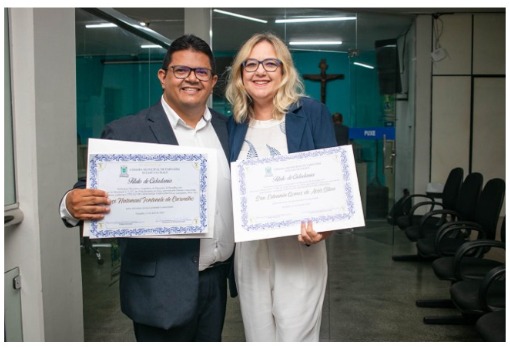 A Câmara Municipal de Parnaíba realizou na noite da última quinta-feira (13/04), sessão solene de entrega do Título de Cidadania Parnaíba aos professores da Universidade Federal do Delta do Parnaíba (UFDPar) do curso de Turismo, Edvania Gomes de Assis e José Natanael Fontenele de Carvalho professor do curso de Ciências Econômicas. Na oportunidade, o Professor José Natanael também recebeu a Medalha do Mérito Legislativo Municipal “Vereador Alcenor Candeira”. Estiveram presentes na solenidade, professores, servidores técnico-administrativos, servidores terceirizados e egressos da UFDPar, além de familiares e amigos dos homenageados.