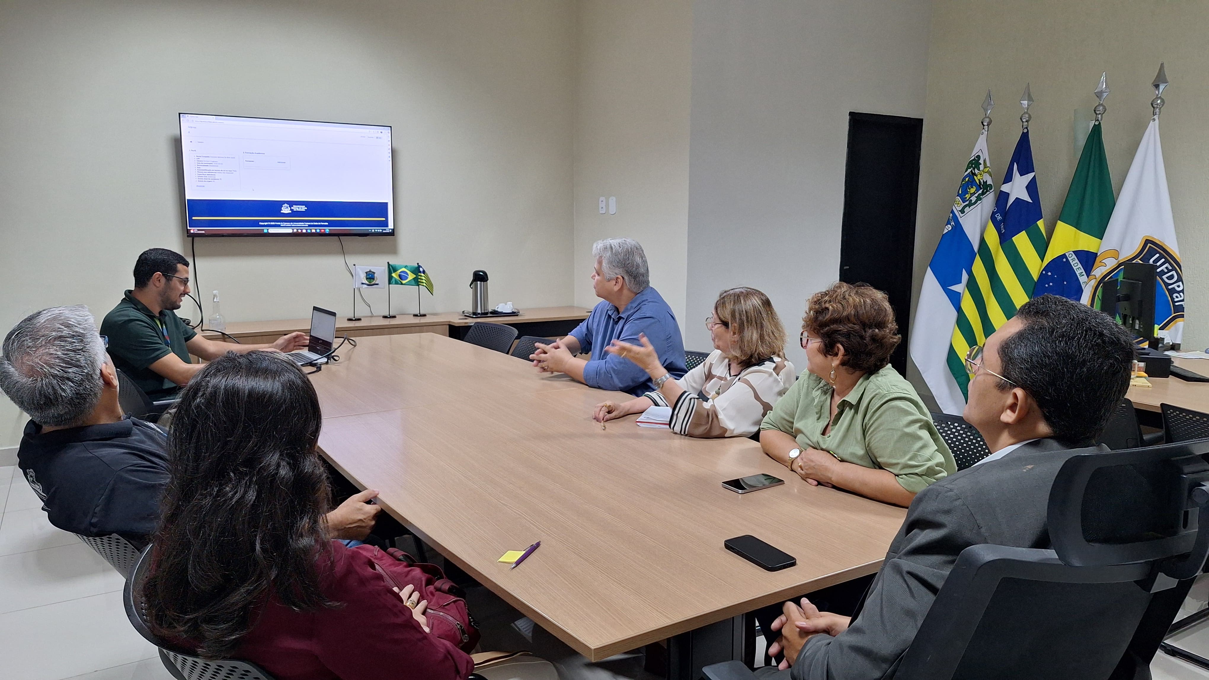 Na última quarta-feira, 2 de julho, a Universidade Federal do Delta do Parnaíba (UFDPar) realizou uma reunião institucional para apresentação das atualizações do Portal do Egresso. Participaram do encontro o reitor, Prof. Dr. João Paulo Sales Macedo; o vice-reitor, Prof. Dr. Vicente de Paula Censi Borges; a pró-reitora de Ensino de Graduação, Profa. Dra. Eugênia Bridget Gadelha; o pró-reitor de Tecnologia da Informação e Comunicação, Prof. Dr. Silmar Silva Teixeira; além de integrantes da comissão responsável pelo desenvolvimento do sistema.