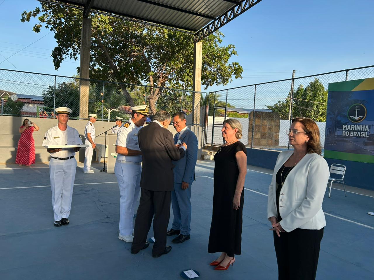 O dispositivo de honra foi presidido pelo Comandante da Capitania dos Portos do Piauí, Capitão de Fragata Ricardo Ferreira Barbosa, com a presença do deputado estadual Dr. Hélio e do vice-presidente da Sociedade Amigos da Marinha (Soamar-Piauí), Anísio Neves, que compuseram a mesa oficial.