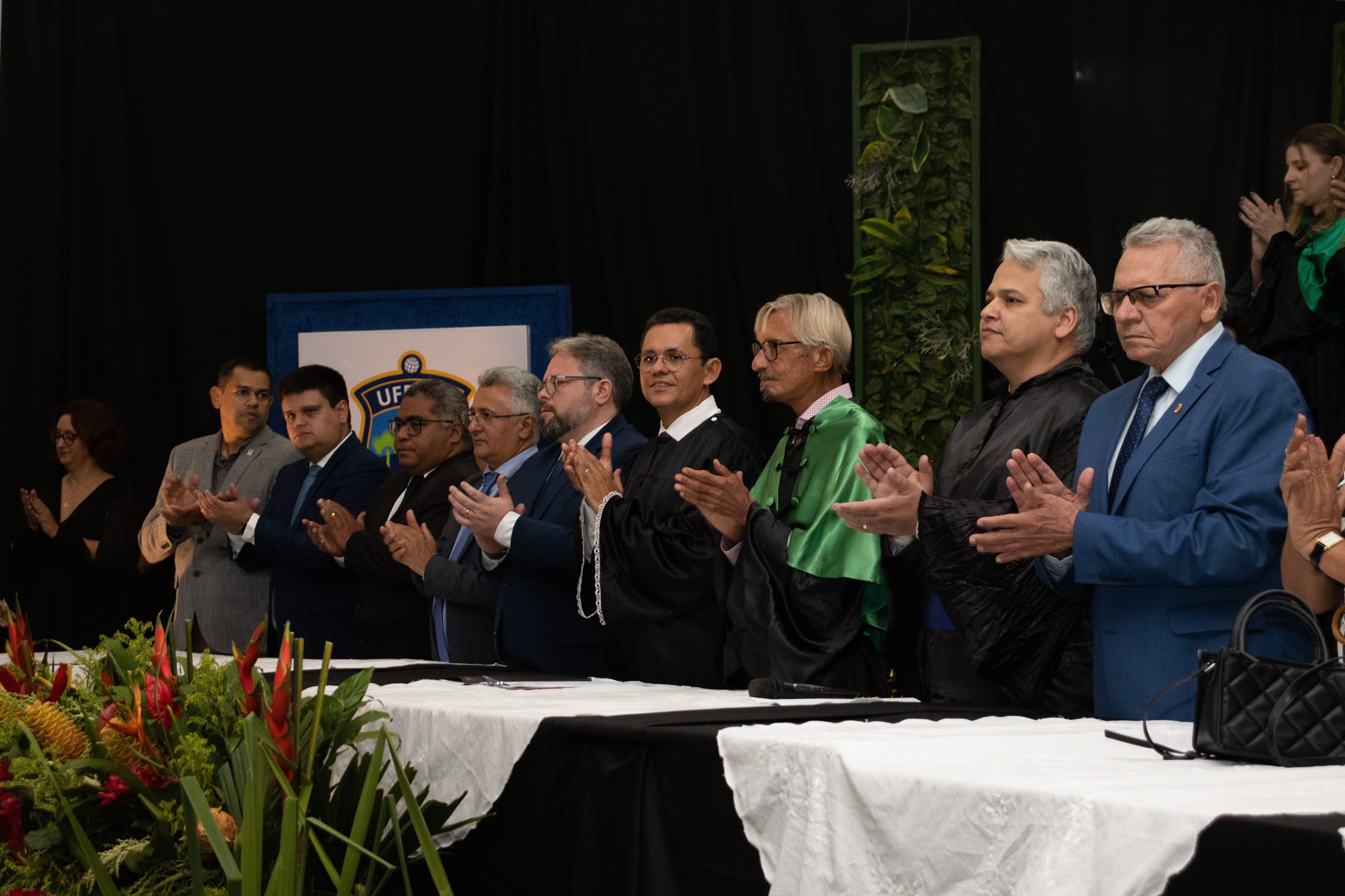 Aconteceu na noite da última sexta-feira, 3, no auditório central da Universidade Federal do Delta do Parnaíba (UFDPar) a Solenidade de Assunção do primeiro Reitor, João Paulo Sales Macedo, e do Vice-Reitor, Vicente Borges, para o quadriênio 2024-2028. O evento teve início às 19h com uma belíssima performance do Quarteto OST, que proporcionou uma atmosfera musical envolvente aos convidados.