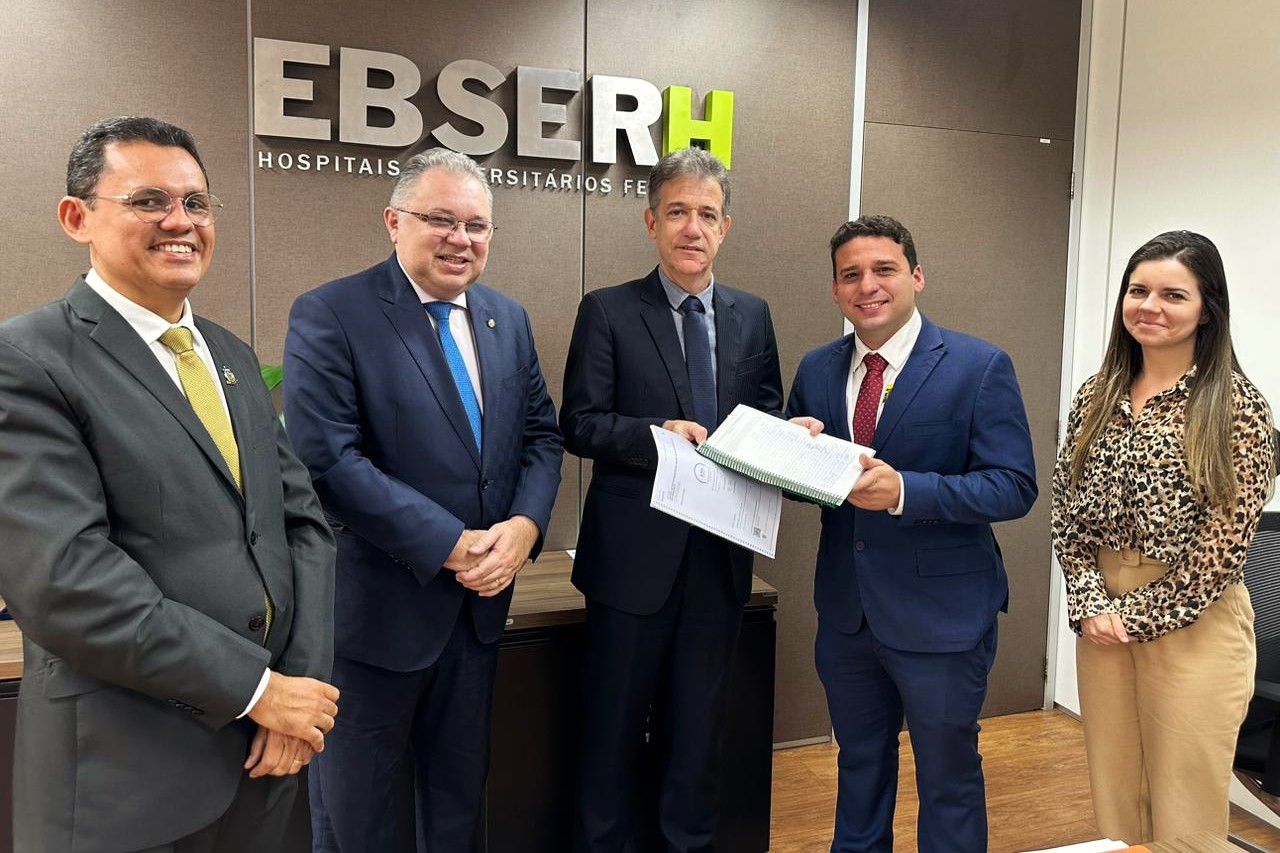 Em uma reunião realizada nesta quarta-feira, 26, a Universidade Federal do Delta do Parnaíba (UFDPar) deu um importante passo para a concretização do projeto do Hospital Universitário (HU). O reitor da UFDPar, Professor João Paulo Sales Macedo, participou de uma audiência com o Presidente da Empresa Brasileira de Serviços Hospitalares (EBSERH), Arthur Chioro. A reunião contou ainda com a presença da assessora da Vice-presidência da EBSERH, Ingrid Magatti, do Deputado Federal e coordenador da bancada do Piauí, Florentino Neto, e do Vereador de Parnaíba, David Soares.