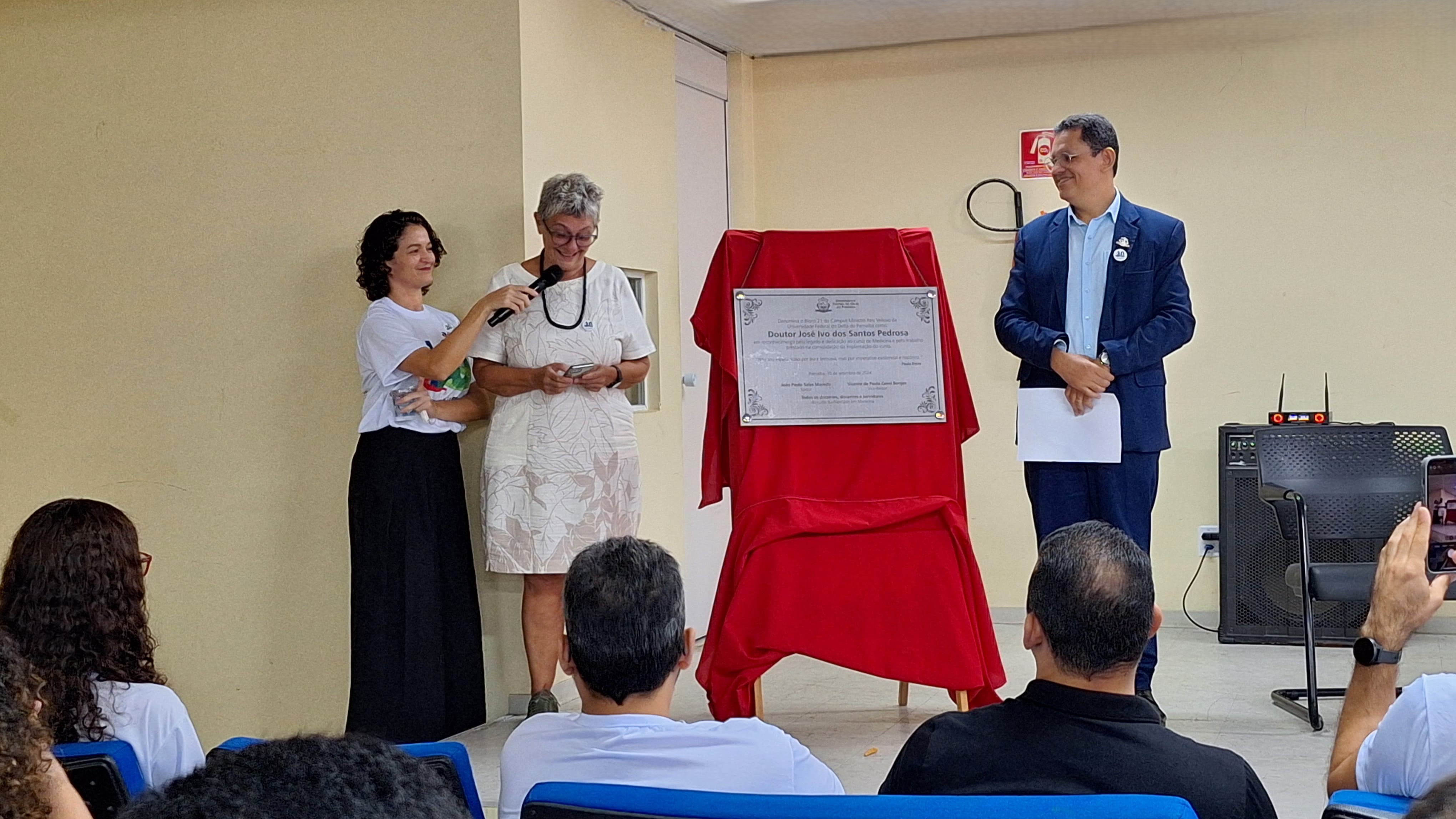Um dos momentos de maior destaque da cerimônia foi a homenagem ao Professor Doutor José Ivo dos Santos Pedrosa, falecido em agosto deste ano, com a denominação do Bloco 21 do campus em seu nome. A homenagem reconheceu a contribuição fundamental de José Ivo para a criação e consolidação do curso de Medicina na UFDPar. A placa foi apresentada durante o evento, e Ana Amélia Pedrosa, sua companheira, emocionou o público ao compartilhar histórias da vida e legado de José Ivo.