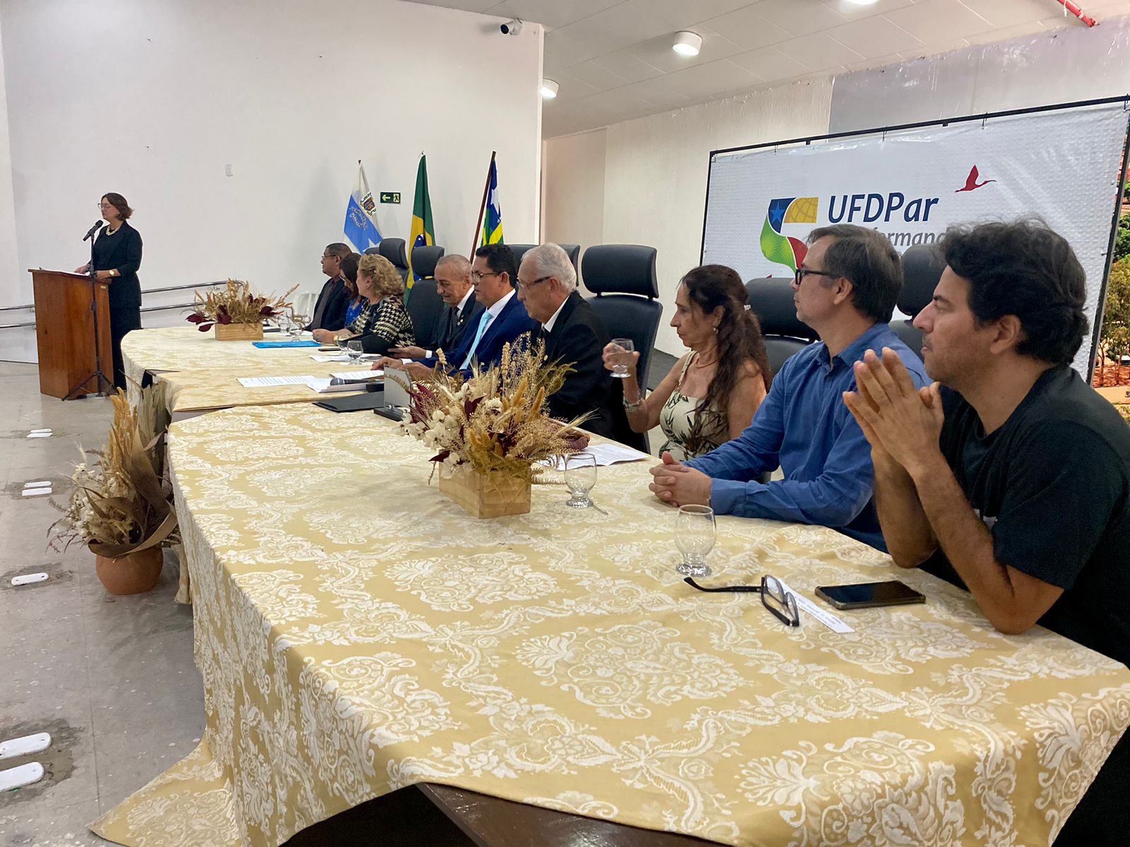 A Universidade Federal do Delta do Parnaíba (UFDPar) concedeu, nesta quarta-feira (31/05), os seus primeiros títulos de Professor Emérito a Mariano Bento dos Santos (in memoriam), José Duarte Baluz e Adilson Farias de Castro, como forma de reconhecer a dedicação e os relevantes serviços prestados ao Campus Ministro Reis Velloso. A cerimônia foi realizada no auditório Central, onde presidida pelo Reitor Pro Tempore, João Paulo Sales Macedo, integrando as comemorações alusivas aos cinco anos de criação da UFDPar. Além dos familiares e amigos, também prestigiaram o evento o vice-reitor pró-tempore, pró-reitores, coordenadores de cursos, professores, técnicos administrativos e estudantes.