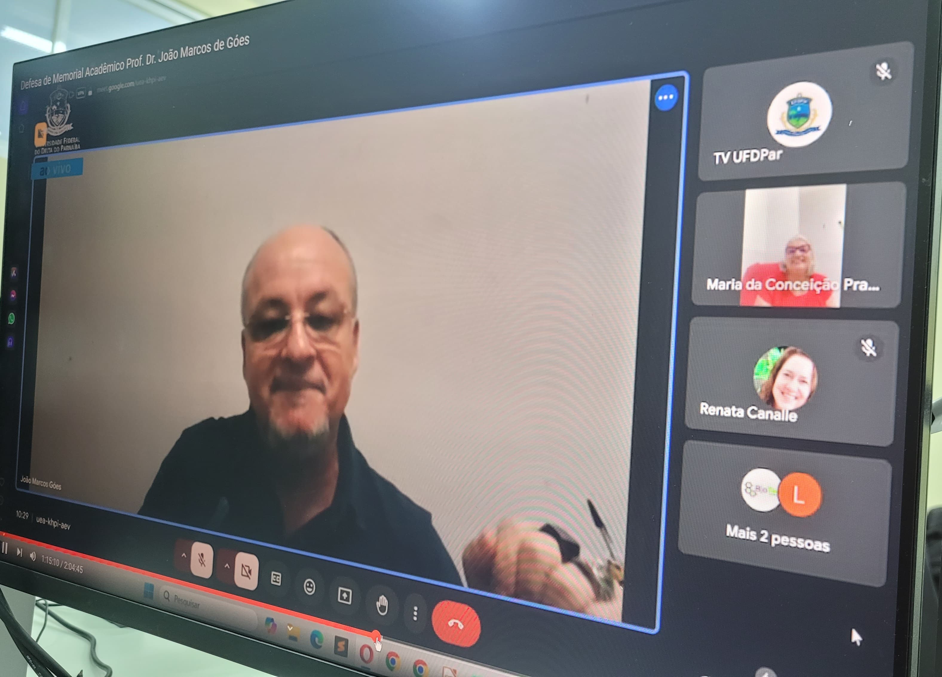 O professor João Marcos de Góes, lotado no Curso de Ciências Biológicas da Universidade Federal do Delta do Parnaíba (UFDPar), apresentou, nesta quarta-feira (06/11), seu memorial acadêmico para progredir à classe de professor titular de carreira do magistério superior. A defesa pública do memorial ocorreu de forma virtual, com a presença de colegas, familiares, amigos e estudantes, além da banca avaliadora, que o consagrou como o mais novo professor titular da instituição.