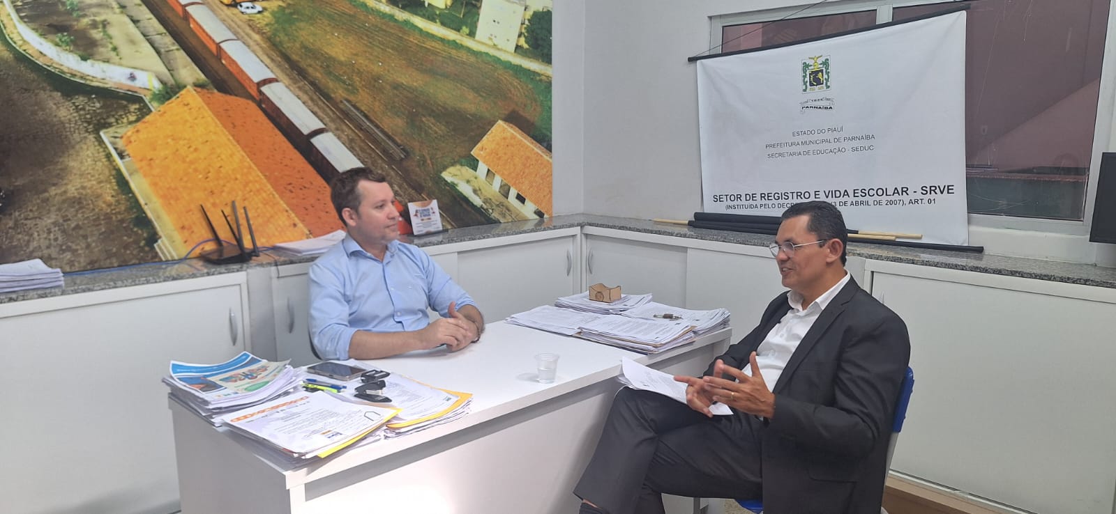 A Universidade Federal do Delta do Parnaíba (UFDPar) e a Secretaria Municipal de Educação de Parnaíba (SEDUC) realizaram, nesta segunda-feira (15), um encontro para discutir novas parcerias voltadas ao fortalecimento da formação de professores no município. O reitor da UFDPar, João Paulo Sales Macedo, acompanhado do prefeito universitário, Moyses Barbosa, foi recebido pelo secretário municipal de Educação, Danilo Rêgo, e pela coordenadora da Educação Básica, Márcia Ribeiro Silva Fernandes, na sede da SEDUC.