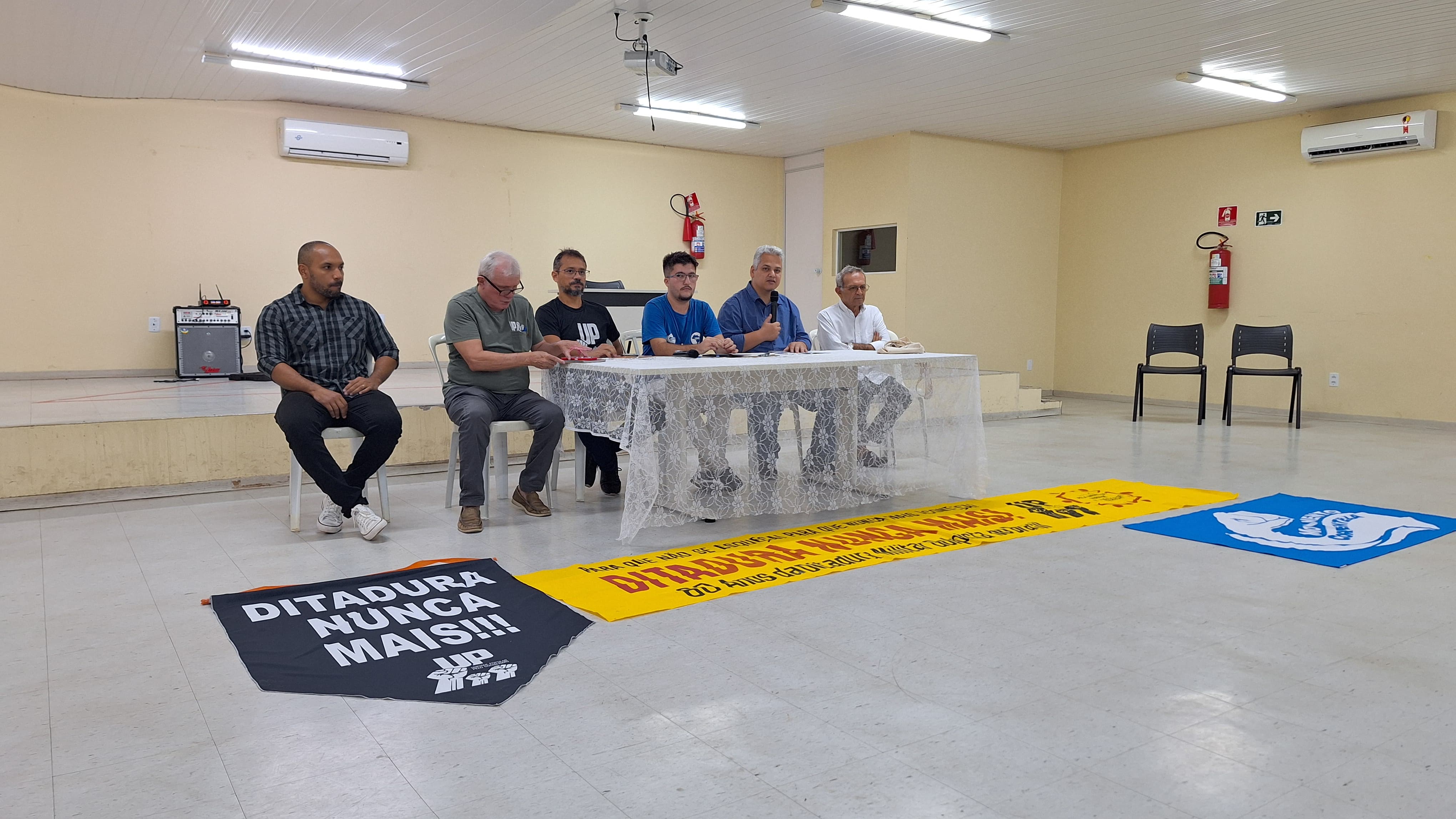 Foto: Membros da mesa durante o evento em alusão aos 60 anos da Ditadura Militar.