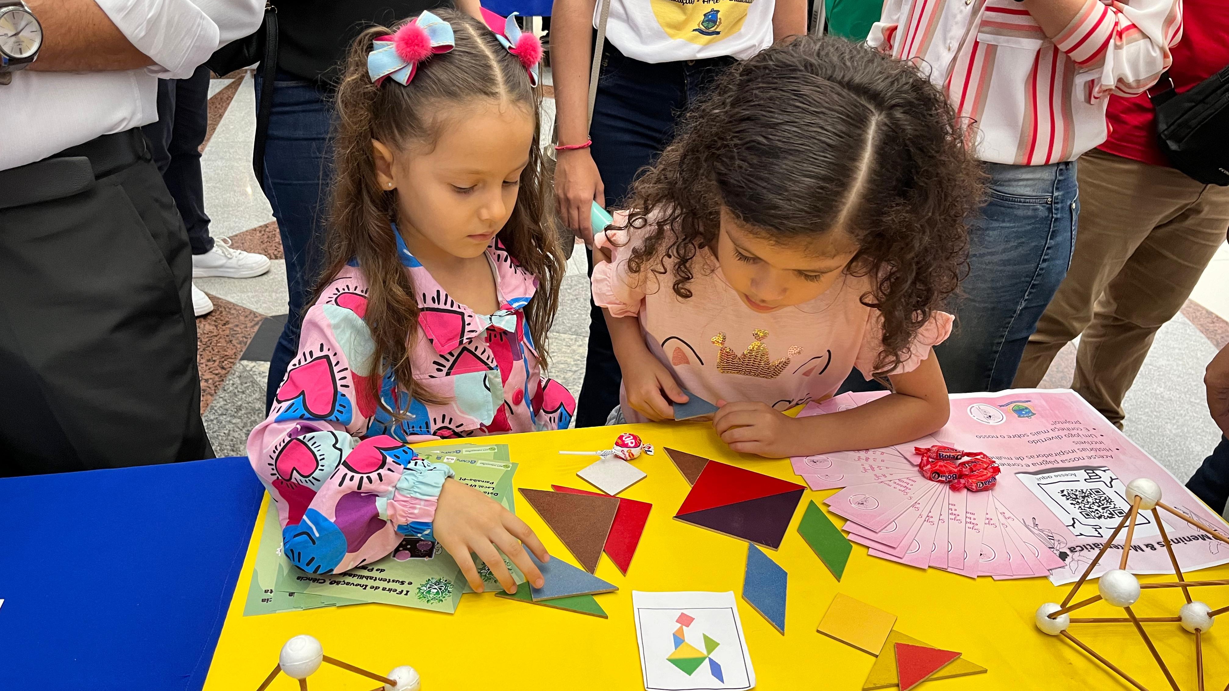Foto: Crianças da comunidade externa interagem com materiais didáticos da I I Monstra Científica e Extensionista da UFDPar.