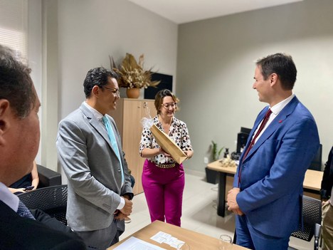 A comitiva composta por representantes da Comunidade Intermunicipal do Oeste de Portugal (Oeste CIM) e do Instituto Superior de Ciências Sociais e Políticas (ISCSP) da Universidade de Lisboa foi recebida na Universidade Federal do Delta do Parnaíba (UFDPar), nesta terça-feira (25/07), pelo Reitor Pro Tempore João Paulo Sales Macedo.