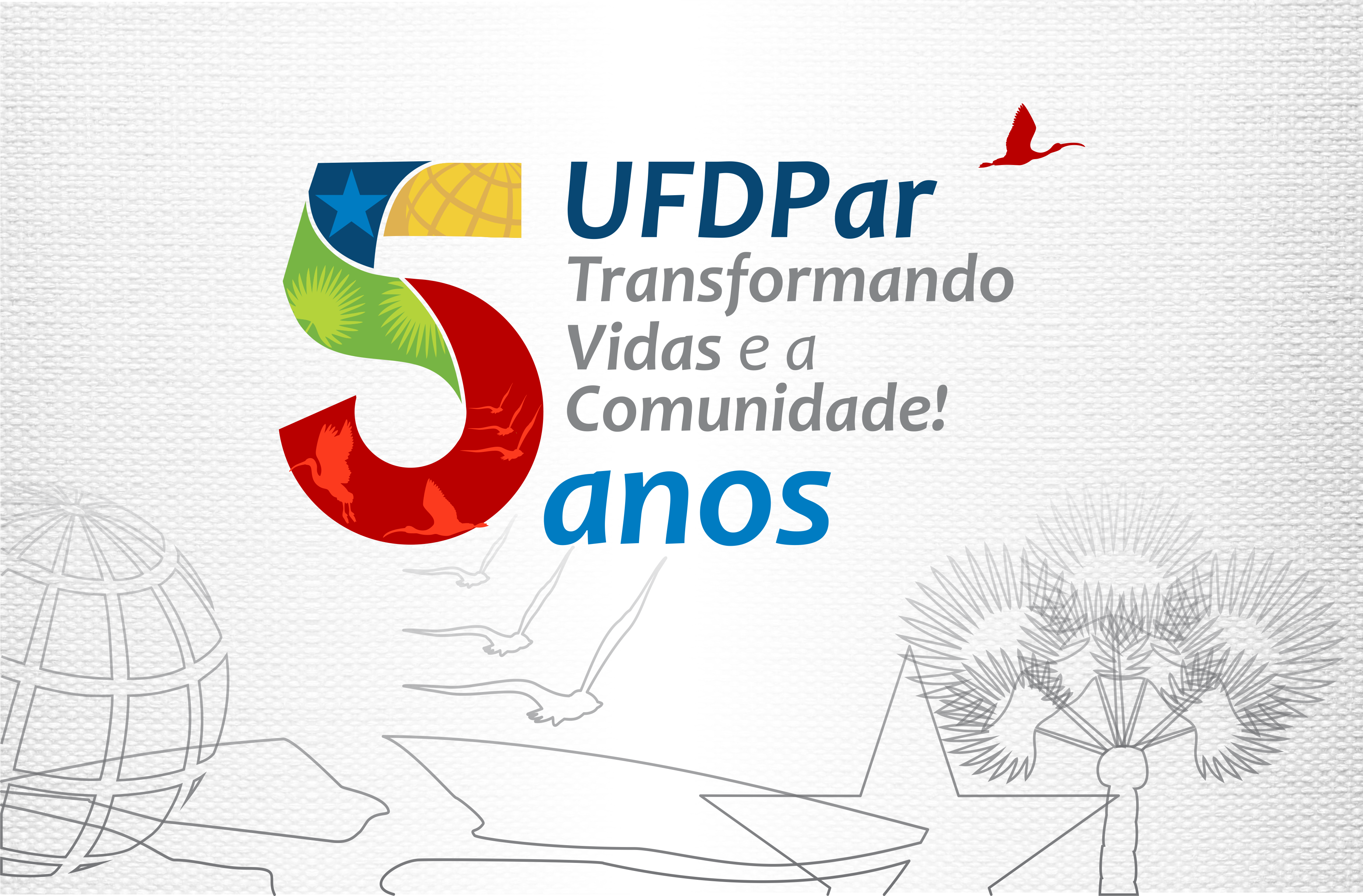 Os traços que formam o número "5" são preenchidos com elementos e as cores presentes no Brasão de Armas da UFDPar. Agregado ao número, o selo utiliza a frase “UFDPar Transformando vidas e a comunidade”, onde busca evidenciar o Papel da UFDPar como participante das transformações das vidas das pessoas e da região, por meio do ensino, pesquisa e extensão.