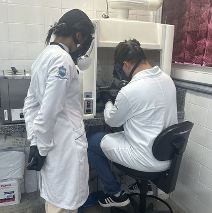 Outro destaque da ação foi o planejamento técnico conduzido pelo Prof. Lucas Nicolau, que, em alinhamento prévio com o CNPEM, garantiu a aquisição dos insumos necessários para o treinamento, incluindo reagentes críticos como tetróxido de ósmio e cacodilato de sódio, além de EPIs não convencionais para o manuseio dos reagentes de maneira a conferir alto grau de proteção aos inscritos participantes do treinamento. O cuidado com a biossegurança foi determinante para a realização segura das atividades, todas conduzidas sob supervisão direta do Dr. João Faria, especialista em Microscopia Eletrônica no CNPEM.