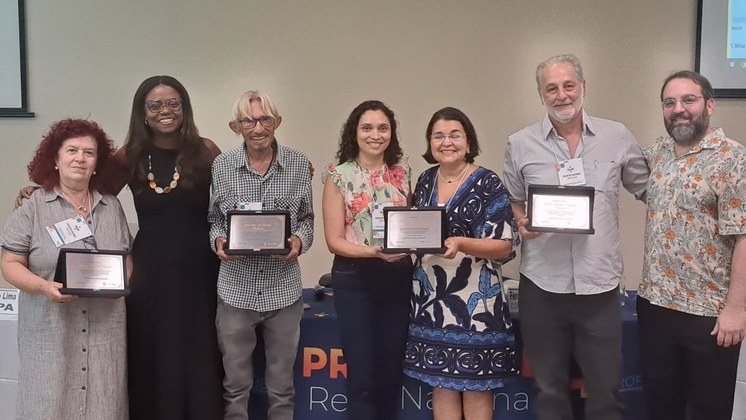 Foto: Professor José Ivo junto aos demais homenageados. Créditos: Assessoria do evento
