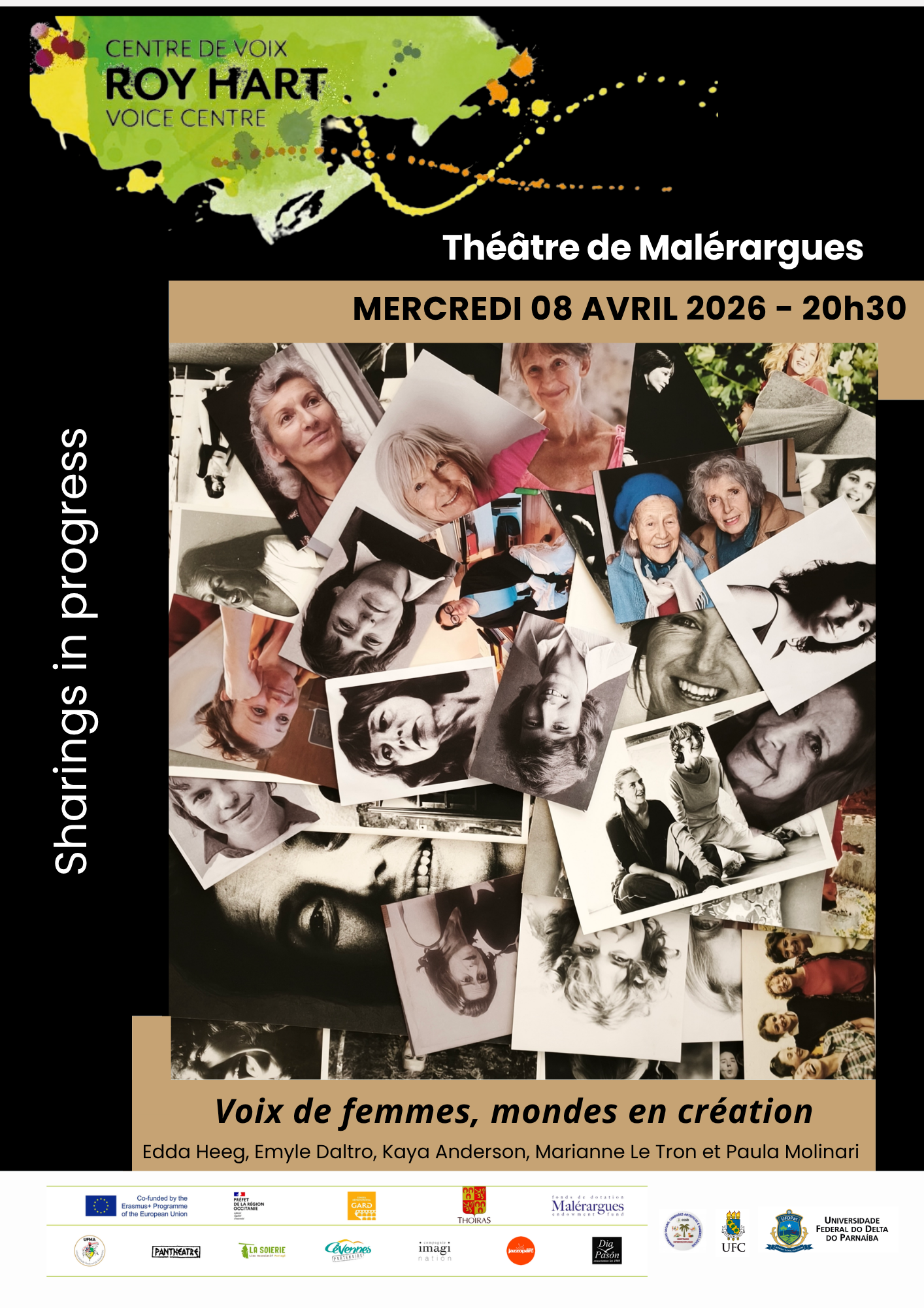 Os materiais recentemente divulgados apresentam atividades realizadas no Théâtre de Malérargues, na França, reunindo artistas e pesquisadoras brasileiras em processos de criação e partilha que evidenciam a potência da voz como linguagem artística expandida. Entre as ações, destacam-se:
