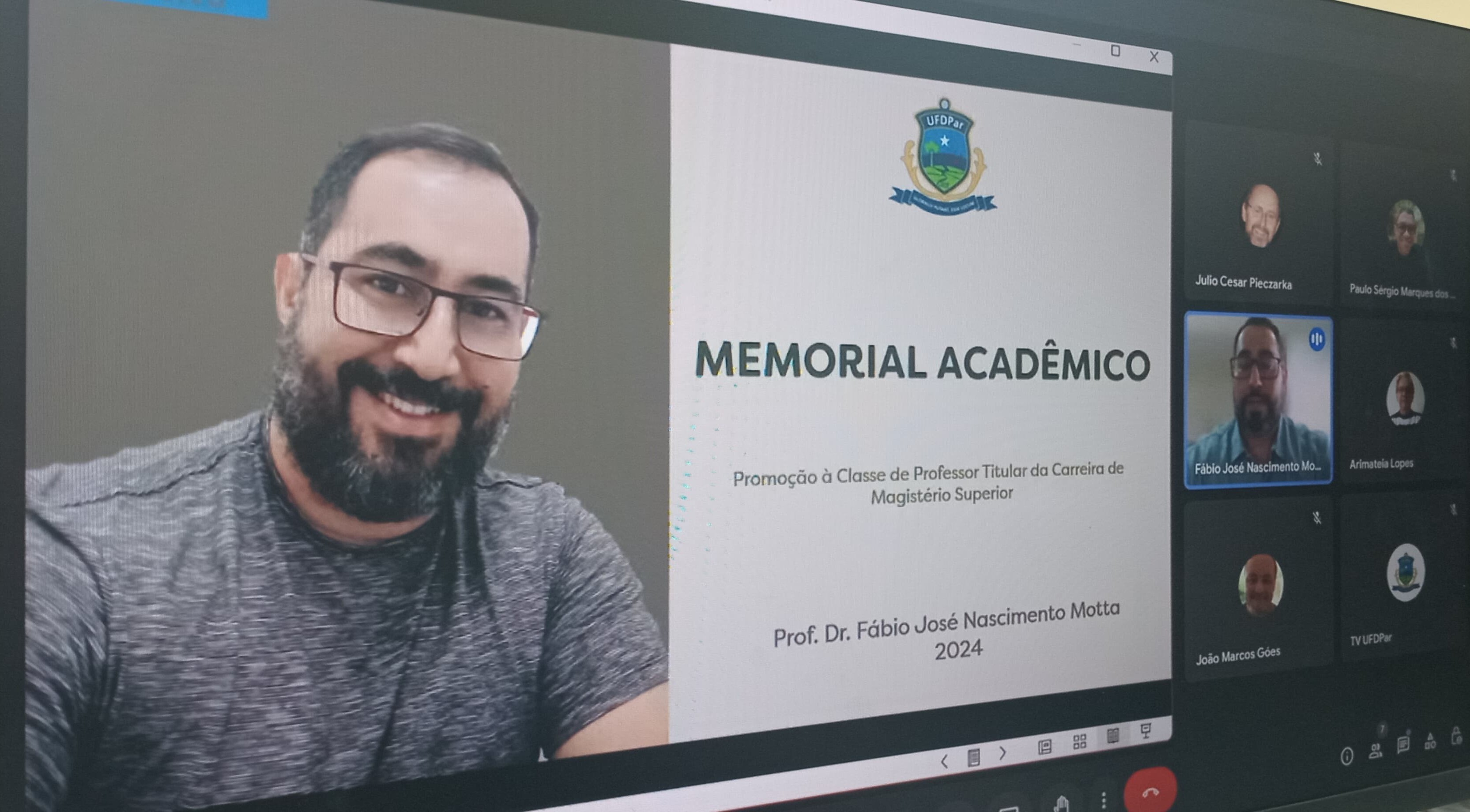 O professor Fábio José Nascimento Motta, vinculado ao Curso de Biomedicina da Universidade Federal do Delta do Parnaíba (UFDPar), realizou nesta quinta-feira (28/11) a apresentação de seu memorial acadêmico como parte do processo para ascensão à classe de professor titular na carreira do magistério superior. A defesa pública, conduzida de forma virtual, contou com a participação de colegas, familiares, amigos, estudantes e a banca avaliadora, que aprovou sua trajetória, tornando-o o mais recente professor titular da instituição.