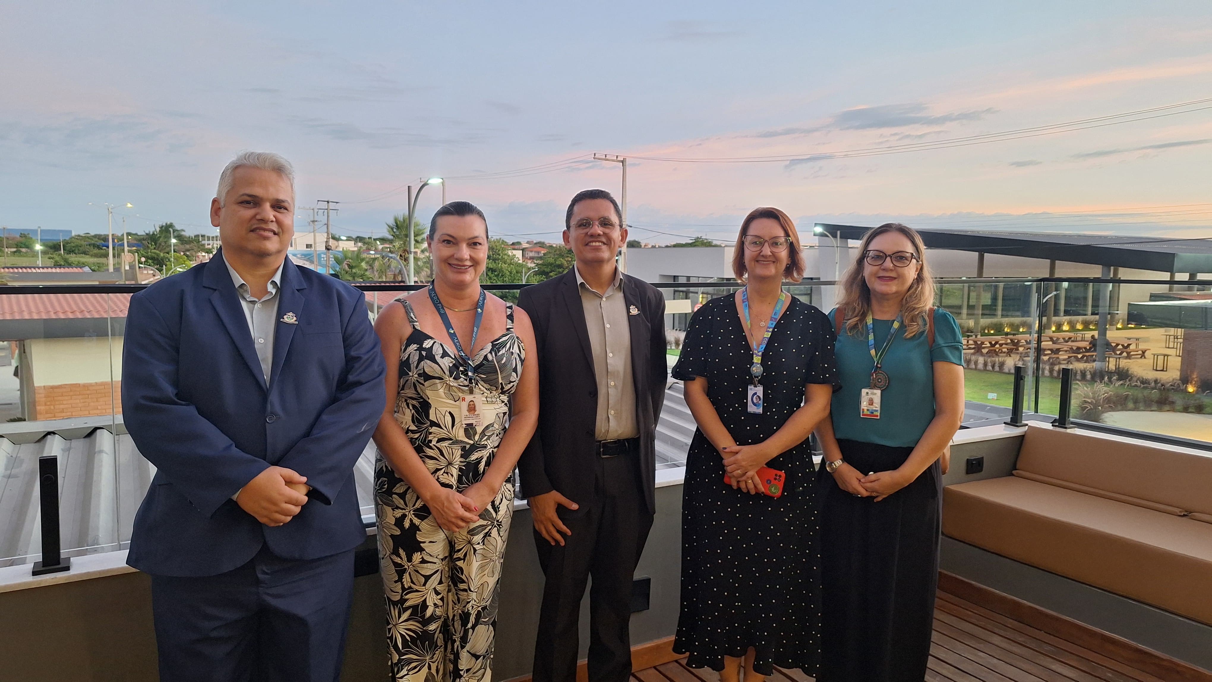Foto: Reitor João Paulo Sales Macedo, vice-reitor Vicente de Paula Censi Borges, professora Heidi Gracielle Kanitz, professora EdvâniaGomes de Assis Silva, e gestora Aero PHB Patrícia Lucy