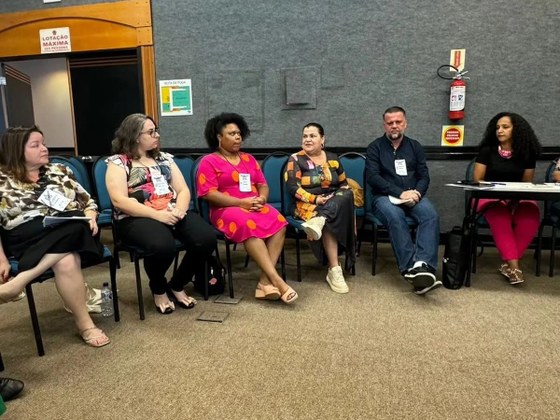As bibliotecárias Cátia Furtado e Márcia Leão apresentaram, em uma discussão de mesa colaborativa, as atividades e ações da Biblioteca Central da UFDPar e sua missão social como biblioteca universitária.