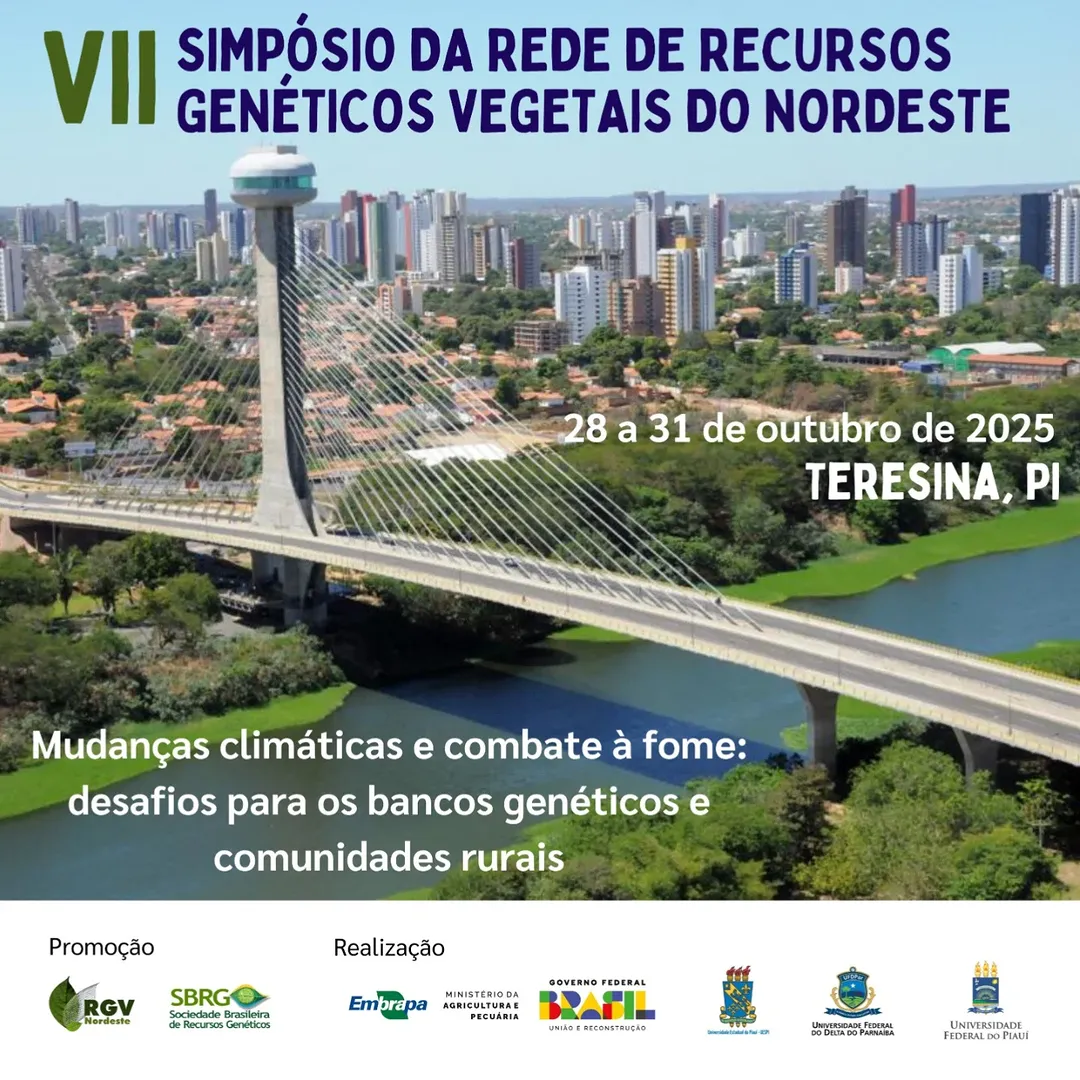 A cidade de Teresina (PI) será palco, a partir hoje, 28 de outubro, da 7ª edição do Simpósio da Rede de Recursos Genéticos Vegetais do Nordeste (RGVNE). O evento, sediado na Universidade Federal do Piauí (UFPI), reunirá pesquisadores, docentes e profissionais de diversas instituições para discutir os desafios e as soluções relacionados aos recursos genéticos vegetais diante das mudanças climáticas e da segurança alimentar. Este evento, promovido pela RGVNE e pela Sociedade Brasileira de Recursos Genéticos (SBRG), contará com a organização das instituições UFPI, UFDPar, UESPI e Embrapa, e reunirá especialistas de renome para discutir os desafios e as soluções para os recursos genéticos vegetais no contexto das mudanças climáticas e da segurança alimentar.