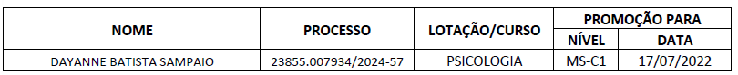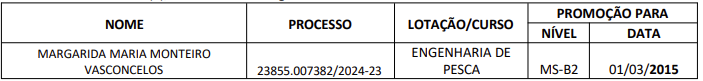 | 3392613 | ANDRE IAGO CONRADO LUCIANO | 23855.001577/2024-06 | 701200 | D-1-01 | 25 | 23/02/2024 | BACHARELADO EM DIREITO |